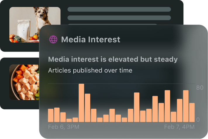 Get AI-powered analysis in your dashboard that automatically surfaces the most important themes, interest spikes and coverage changes, eliminating data noise.